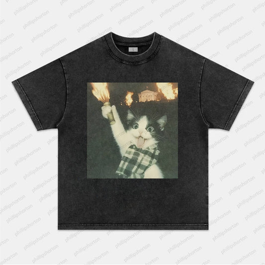 FUNNY CAT BURNS DOWN THE WHITE HOUSE TEE